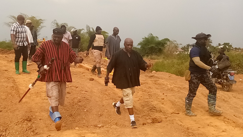 Okyeman Nifahene who doubles as Asiakwahene, Daasebre Twum Ampofo, his cabinet, and a task force stormed several mining sites at Asiakwa in Abuakwa South in an attempt to arrest illegal miners working along the riverbanks.