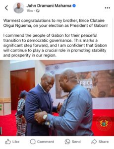 Through his social media handles, President Mahama commended the people of Gabon for their peaceful transition to democratic governance and expressed confidence that the country will continue to play a key role in promoting regional stability and prosperity.