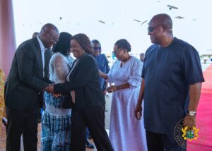 She was welcomed at the airport by President John Dramani Mahama, First Lady Mrs. Lordina Dramani Mahama, Chief of Staff Julius Debrah, the Vice President’s Chief of Staff Alex Segbefia, and other senior government officials.