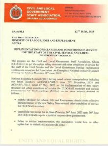 The Civil and Local Government Staff Association, Ghana (CLOGSAG), has issued a firm two-week ultimatum to the government, demanding the immediate implementation of a new salary structure and improved conditions of service for its members.