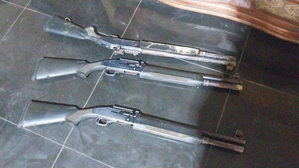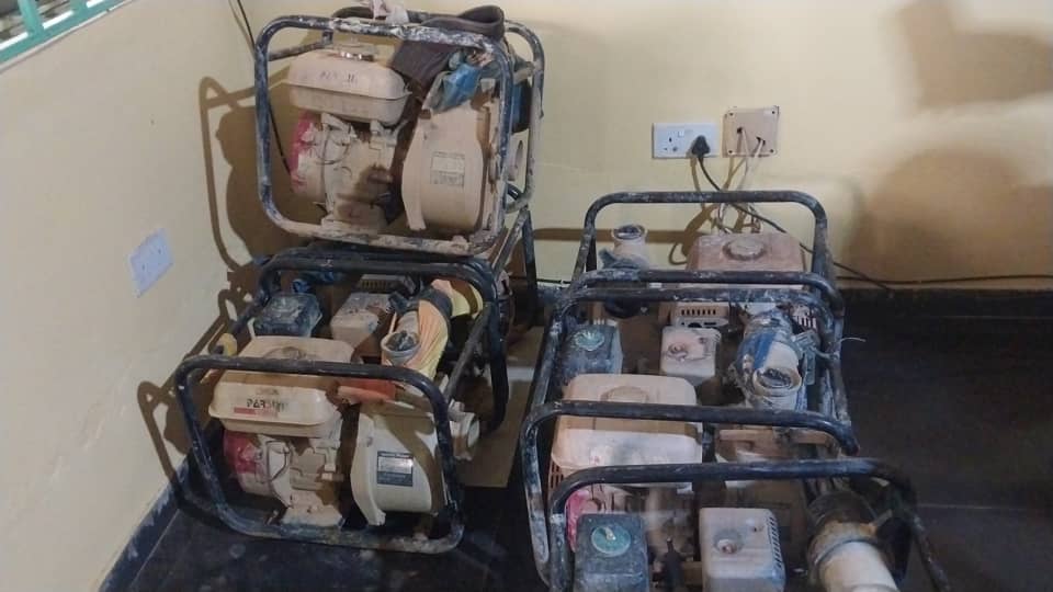 Security personnel seized three pump action guns, a pickup truck with registration number GE-2527-23, and six pumping machines reportedly belonging to Castlepeak Mining Limited.
