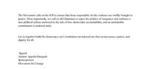 The statement was signed and issued by Andrew Appiah-Danquah, the Spokesperson for the Movement for Change.
