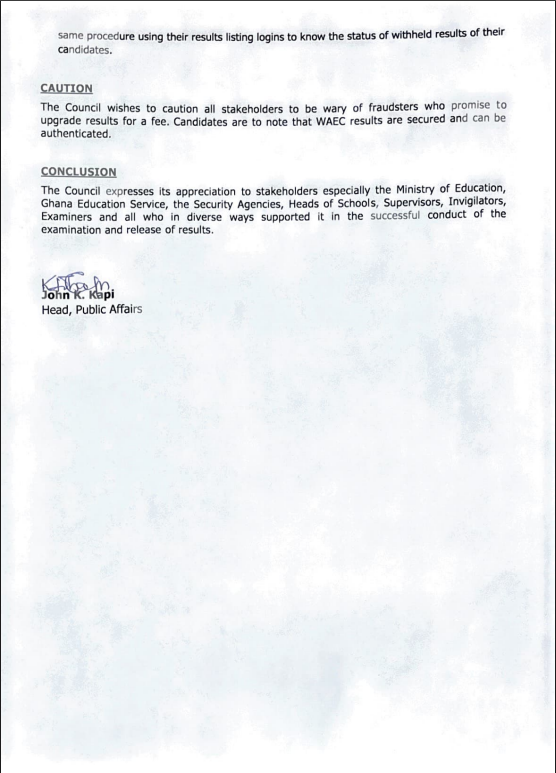 It expressed gratitude to its stakeholders especially the Ministry of Education, Ghana Education Service, and just to mention a few who in diverse ways supported it in the successful conduct of the examination and release of results.