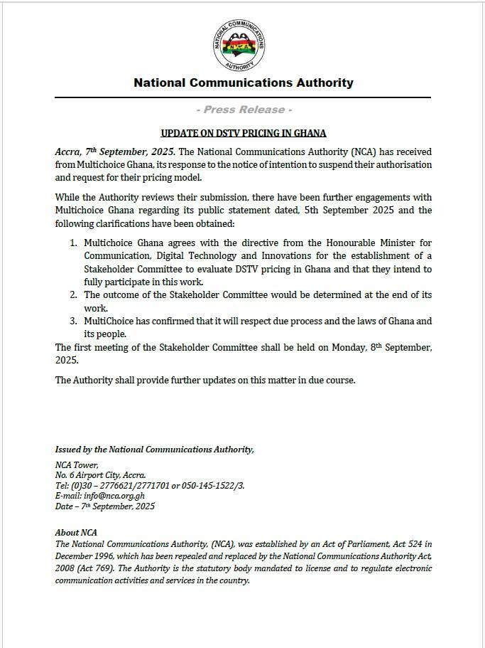 The National Communications Authority (NCA) has confirmed steps toward the official commencement of stakeholder engagement regarding DSTv pricing in Ghana.