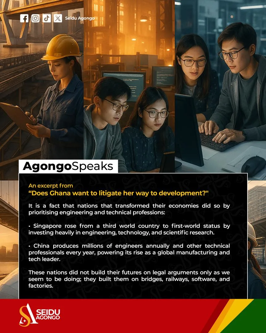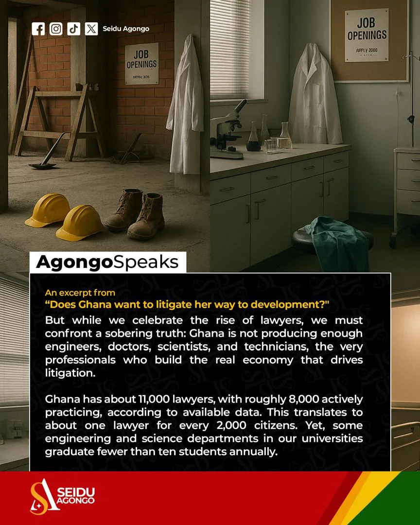 But while we celebrate the rise of lawyers, we must confront a sobering truth: Ghana is not producing enough engineers, doctors, scientists, and technicians, the very professionals who build the real economy that drives litigation.
