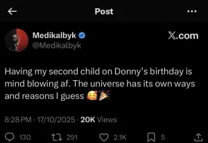 The post quickly went viral, sparking excitement among fans who congratulated Medikal and applauded the timing of the birth, which he described as “mind blowing.”