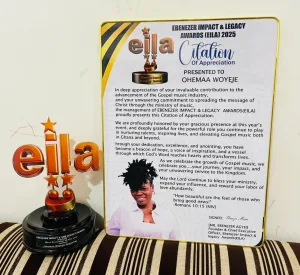 A citation accompanying the award commended Ohemaa Woyeje for her “invaluable contribution to the advancement of the Gospel music industry” and her dedication to inspiring and nurturing talents across Ghana and beyond.