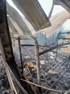 The fire destroyed the roof, ceiling, personal belongings, books, beds, and bedding. Notably, two fire extinguishers on the affected floor exploded during the incident.