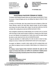 The Western Central Regional Police Command commended the public for their support and reaffirmed its commitment to fighting human trafficking and protecting vulnerable persons from exploitation.