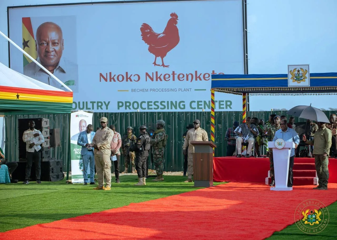 President John Dramani Mahama has performed the sod-cutting ceremony for the construction of a modern poultry, meat, and feed processing facility at Bechem in the Ahafo Region.