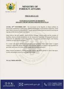 In a press release issued by the Ministry of Foreign Affairs on Sunday, November 30, 2025, Ghana reaffirmed its commitment to global peace, stability, and international cooperation principles.