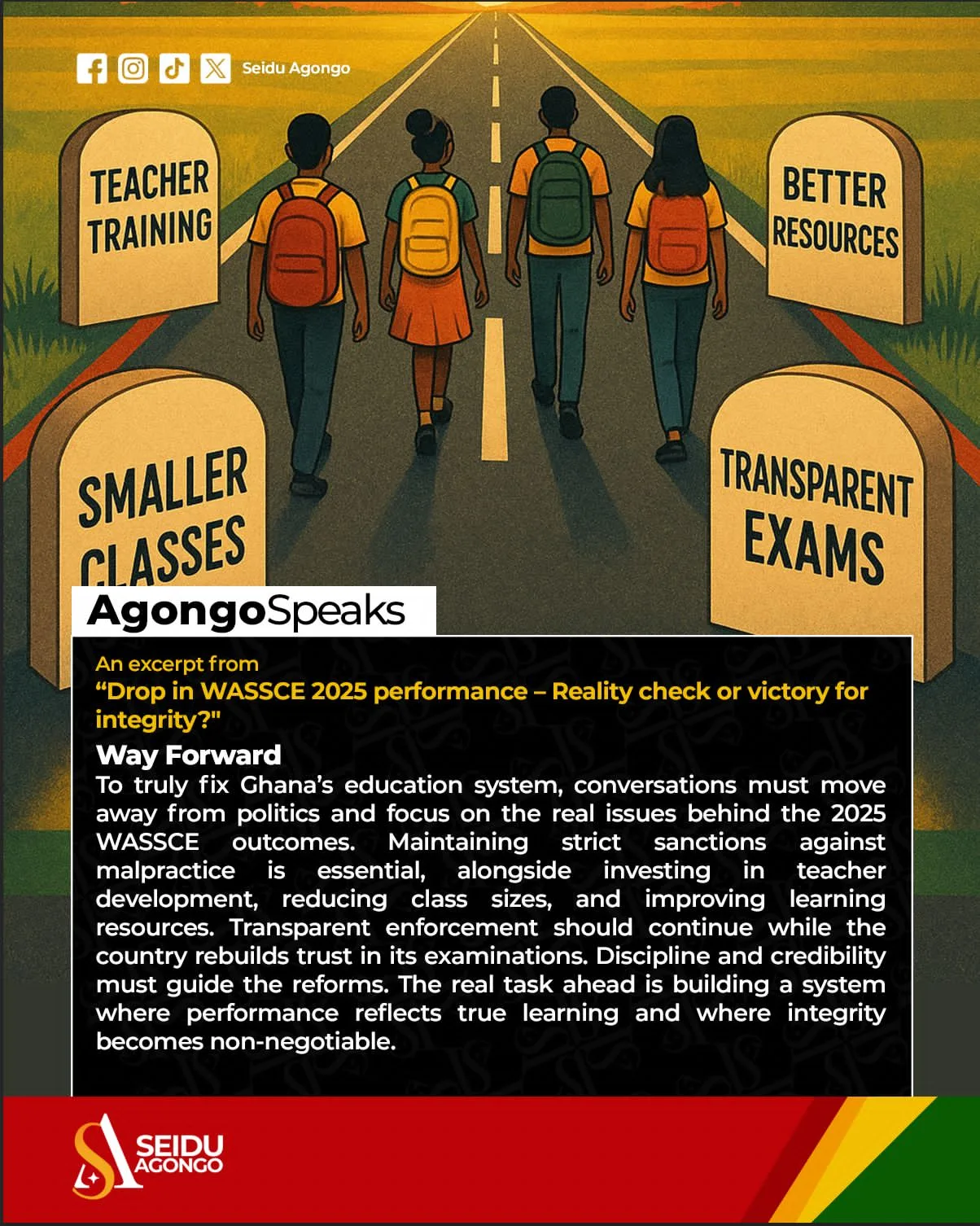 While it is important to find the root cause the 2025 WASSCE results to be able to institute measures against a repeat, it is advisable to detach politics and emotions from the debate and focus on how to reset the entire education system to regain the confidence of external stakeholders.