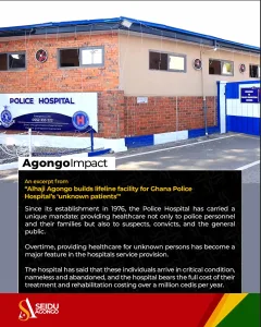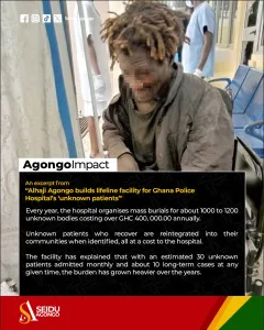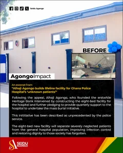 On Tuesday, December 30, 2025, the Ghana Police Hospital inaugurated a new eight-bed facility funded by Alhaji Agongo to house “unknown” patients – people brought in without any traceable relatives, often destitute, mentally ill, or victims of road accidents.