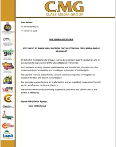 The Class Media Group (CMG) has condemned Ghana National Fire Service (GNFS) personnel for assaulting one of its journalists and urged a proper