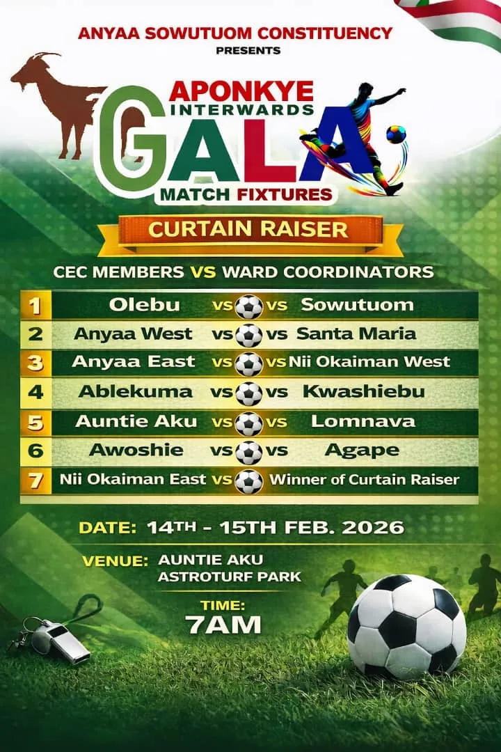 This two-day tournament will bring together teams from Olebu, Sowutuom, Anyaa West, Santa Maria, Anyaa East, Nii Okaiman West, Ablekuma, Kwashiebu, Auntie Aku, Lomnava, Awoshie, Agape, and Nii Okaiman East wards.