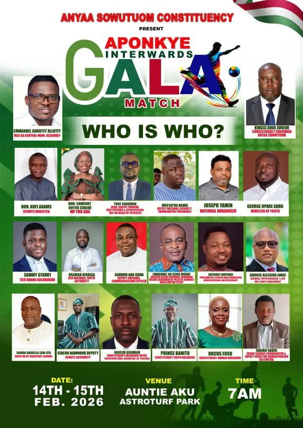The National Democratic Congress (NDC), Anyaa Sowutuom Constituency, will organise the Aponkye Inter-Wards Football Gala on this year’s Valentine’s Day.