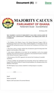 After what it described as extensive deliberations, the leadership of the Majority Caucus resolved to formally communicate its position to the Functional Executive Committee of the NDC.