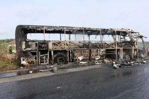 Report indicates that the accident claimed three lives, with two males and one female burnt beyond recognition.
