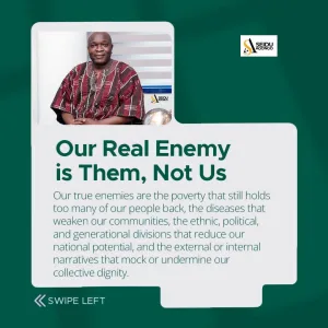 Our true enemies are the poverty that still holds too many of our people back, the diseases that weaken our communities, the ethnic, political, and generational divisions that reduce our national potential, and the external or internal narratives that mock or undermine our collective dignity.