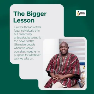 Now, the bigger lesson here like the threads of the fugu, individually thin but collectively unbreakable, so too is the power of the Ghanaian people when we weave ourselves together in purpose for whatever task we take on.