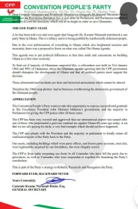 In its appreciation section, the CPP expressed gratitude to President John Dramani Mahama’s government and the majority in Parliament for granting the CPP justice after years of grievances, including the renaming of Ghana’s international airport after Nkrumah 60 years post-independence.