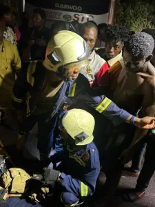 The STC driver, Mr. Isaac Yigah, was trapped in the wreckage but was rescued by the Ghana National Fire Service (GNFS) team led by AStnO Danku Christian.
