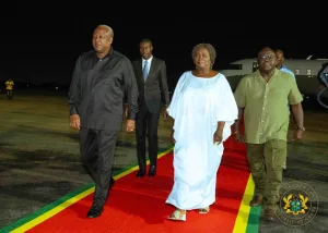 President John Dramani Mahama on Sunday, returned home from the United Nations General Assembly in New York to a warm reception after Ghana secured the adoption of its slavery resolution.