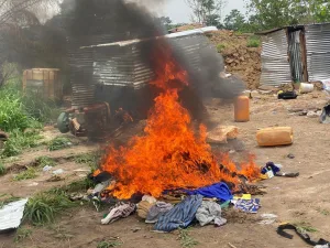 On Tuesday, 14 April 2026, a NAIMOS task force raided illegal mining sites at Benkasa and Amomaso communities, seizing equipment and destroying makeshift structures.