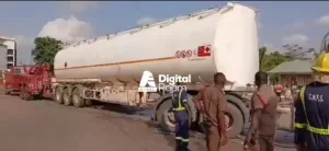 The Ghana National Fire Service (GNFS) has dispatched a recovery truck to the scene to assist in towing the tanker to safety and facilitating recovery operations.