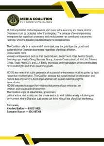 However, the coalition, in a statement, also highlighted a pressing issue: the politicization of indigenous enterprises in Ghana.